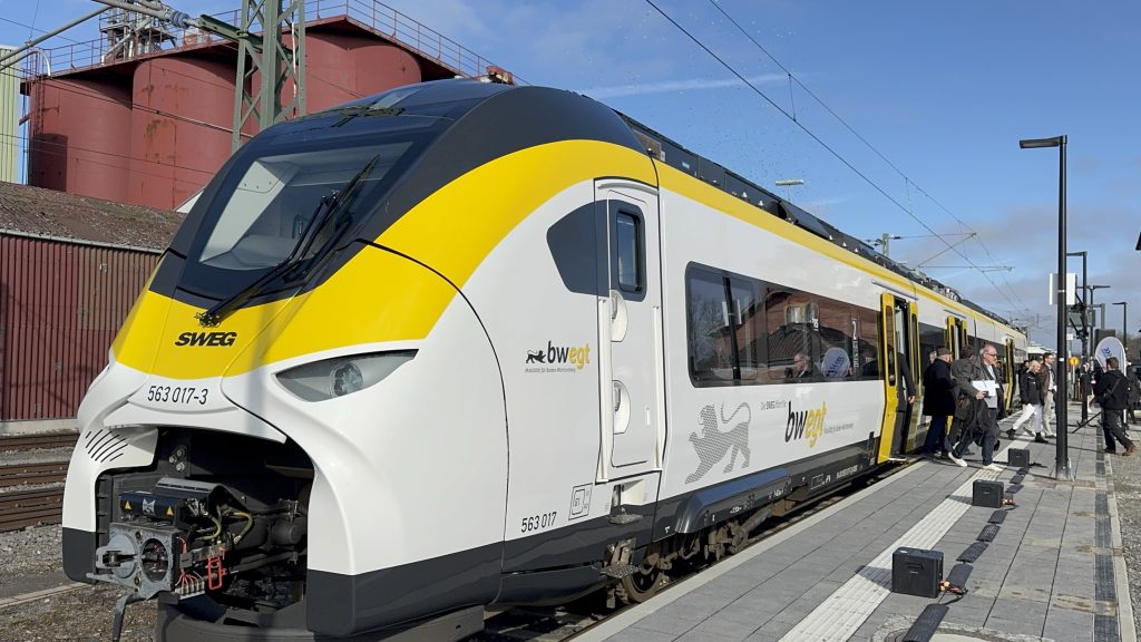 Podcaster und Lokführer Gregor Börner im Führerstand eines iLint, Baureihe 554. (Wasserstoffzug)